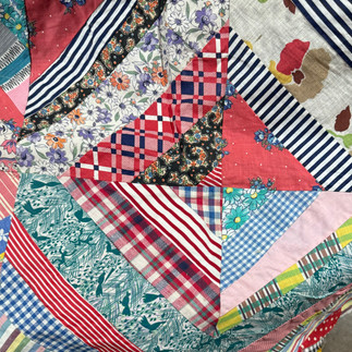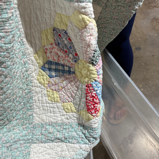 I snuck a picture of the cute duvet cover she had, because I think these would be good size rectangular flannel blocks to work with. I'm going to guess that these ranged from letter size paper to small placemat size blocks.